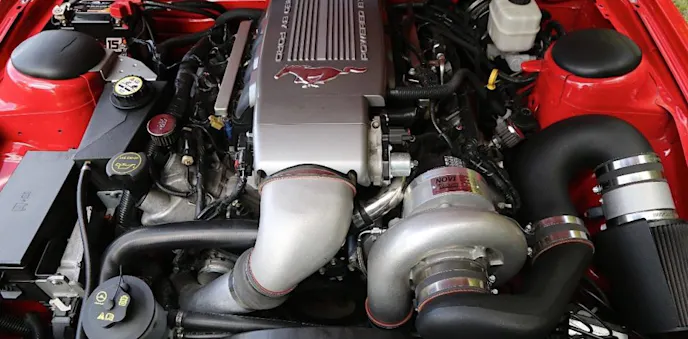 That included the stock camshafts, intake manifold, cylinder heads, valve-train assembly, and complete rotating assembly. Brent and Chad, quite literally, bolted a massive blower onto a stock Three-Valve Mustang.