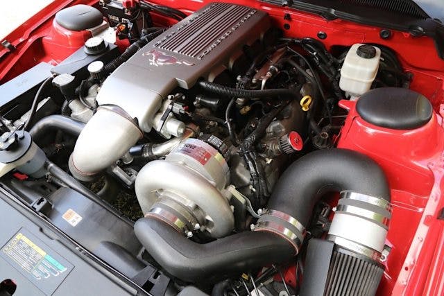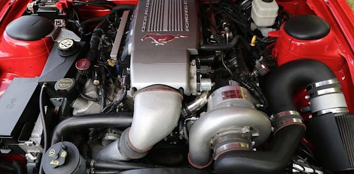 The new rearend combination consisted of a pair of Moser 31-spline street axles, a Moser differential girdle, an Eaton True Trac differential and 4.56 gears. This rearend combination, in conjunction with the still-factory TR-3650, was able to push Chad and his 300 rwhp Three-Valve into the 11.90-second range at 116 mph. Finally, Chad had an inclination that the factory Three-Valve 4.6-liter engine was finally ready for a boost, so to say.