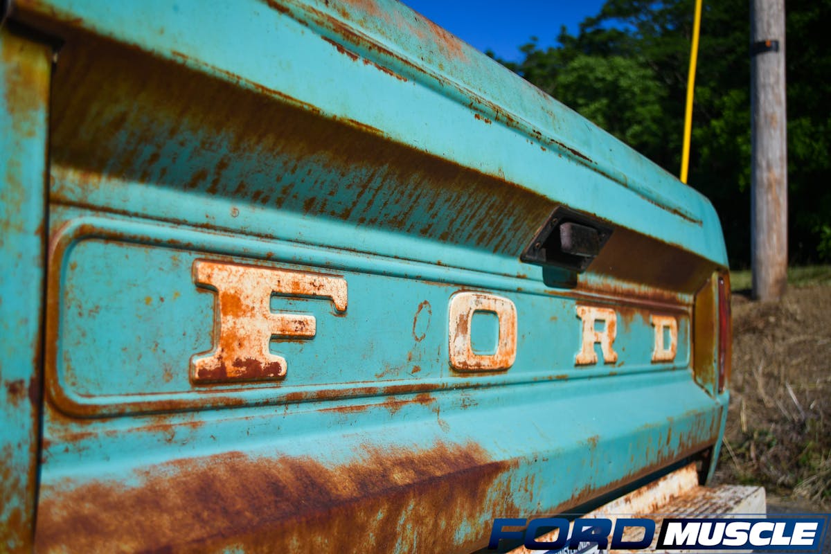 One of the many things that sets Sands’ F-100 apart from the crowd, is its natural patina, from over 53 years of the paint being naturally worn down by the elements. The faded blue and the rust are simply gorgeous. The paint is 100-percent original and he has not touched it. “I didn’t even add clearcoat over it, like other pro-touring builds do,” says Sands.
