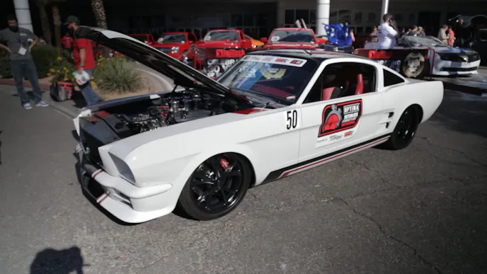 That brings us to a car that we almost all agreed was the best Mustang at this year’s SEMA show, though it was one that flew under the radar in the weeks leading up to the Las Vegas event. Ryan Venturine’s fastback ‘65, built by Scott’s Hot Rods and Customs, brought powerful elegance to the SEMA show with its unique look and incredible drivetrain.