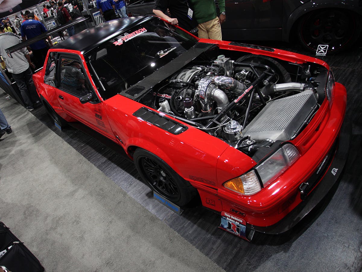 While hatchbacks were all the rage in the 1980s, Ford also offered a coupe, or notchback version of the famed Fox-body Mustang, and our number three favorite from SEMA 2013 is the Top Notch Mustang by Creations ‘n’ Chrome. Under the hood is an 850 horsepower supercharged Ford Racing Aluminator engine, while lightweight carbon fiber body pieces help shed weight from this already-light ride.