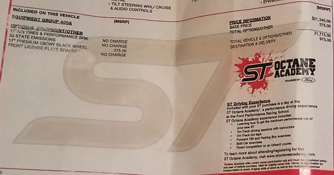 We did our homework before purchasing our Fiesta ST. Because we are going to autocross the car, we wanted to get the lightest version of the Fiesta possible. There were a few options that looked enticing, especially the Recaro seats (which many Fiesta ST owners swear by). However, the Recaro seat option came with heated rearview mirrors, making the car heavier than the non-Recaro optioned cars. We eventually found a car that had zero options, other than a $375 painted wheel upgrade. We didn’t care about the wheels because we knew we will be swapping out the wheels later for something lighter for racing (improving unsprung weight, rotational mass, and thus braking and accelerating efficiency). Not only is a no-option Fiesta lighter, but it is less expensive too. After some haggling, we scored ours for $19,000. That is dirt cheap for the performance! Also with the purchase of the car, we get a free day at Ford’s Octane Academy at Utah Motorsports Campus (which we will cover later in a future “The Way of the FiST” installment).