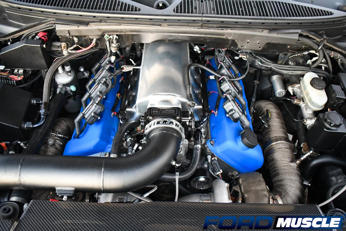 Though he raced the truck in its factory supercharged form and added a few modifications, it didn’t take long until he made the leap to his favorite power adder and started running mid 11-second elapsed times with the stock engine.