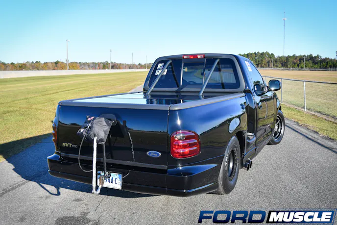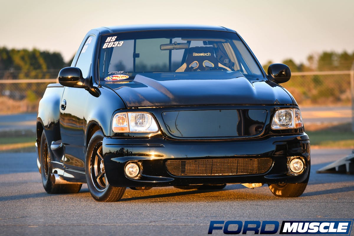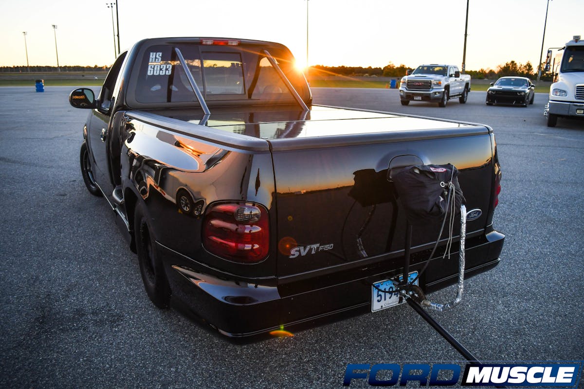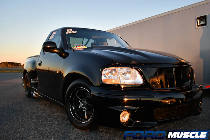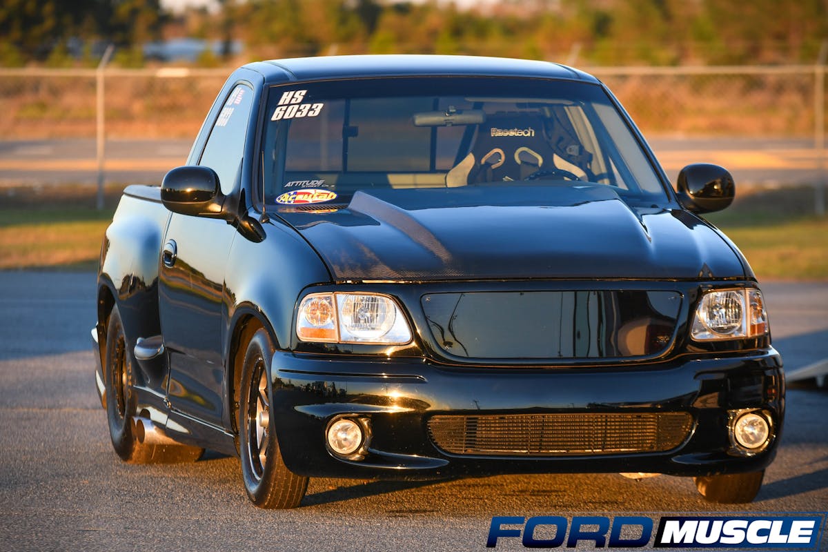 As this unassuming 2000 SVT Lightning pulls into the burnout box and turns the sticky Mickeys out back into billowing clouds of smoke, the pickup doesn’t cause much of a stir. However, when Paul Albino revs it and bumps it into the beams on the transbrake, the raspy growl of the twin-turbo modular engine underhood turns heads.