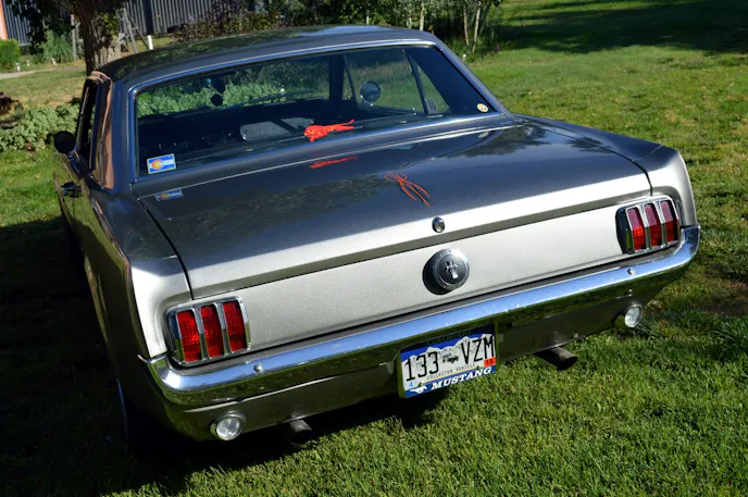 Making the car stand out even more is the fact that it lacks a lot of its original chrome except for the bumper, small running horse tri-bar emblems on the front fenders, and the rear taillight surrounds, an aesthetic choice Scott made to give the car a more clean look, he told us.