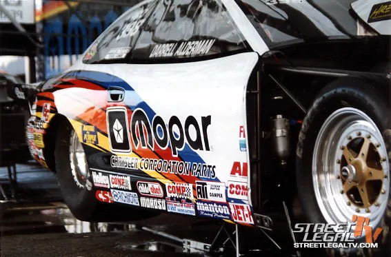 Well, he went up that Monday morning for his time trial and while he was doing his burnout the entire side of the engine block pulled out. He got around to the pits but had no spare engine. He lived in Decatur, IN which was maybe a little under 100 miles from there. It was about 2 hours before the first round started when all of this happened. For most people that would have been it, but John had seen a helicopter giving rides to spectators over the track, so he went and found the helicopter and had the guy fly him to Decatur so he could get a spare block. He landed in the middle of the street, ran in, grabbed the new block, and started prepping it in the helicopter on the way back.