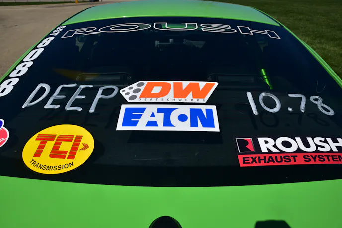 After Brenspeed installed the new Aluminator engine and fuel system, Larry reintroduced the car at the NMCA/NMRA Super Bowl at Route 66 Raceway, where over 500 vehicles competed. Like clockwork, his Roush ran consistent 10.70s all weekend. Although he went out in round two of the Super ’Stang class, Larry was extremely pleased with the car’s performance.