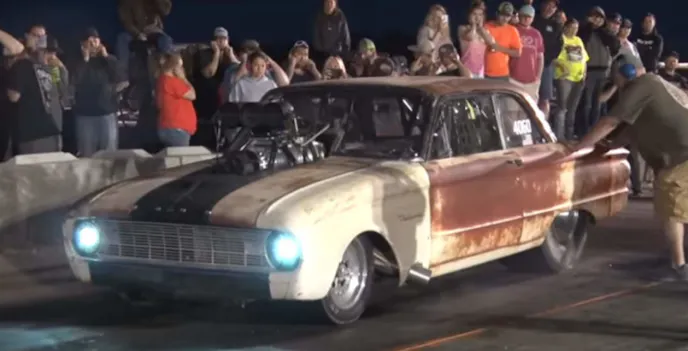 According to Paul, the car makes somewhere around 1,800 horsepower. In the video above, he took his car all the way to the finals in the Big Tire Class at the Coffeyville Street Drags in Coffeyville, Kansas, where he lost out to a Pontiac GTO due to a loss of fuel pressure thanks to a blown fuel line. Without the mechanical issue in the finals, there would undoubtedly have been a different ending to this story. Win or lose, Paul has one nasty, albeit rusty Ford Falcon.