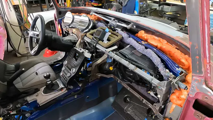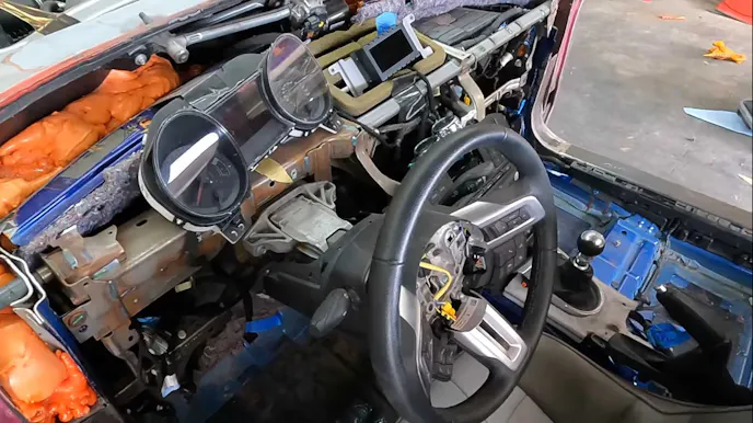 This 1962 F100 now features independent coil front and rear suspension, and unlike many piece-meal aftermarket upgrades which try to modernize a vehicle through individual components, this truck, when finished, will be as modern as any Mustang available today. Integration of all the newer gizmos is seamless since they were already happily working together in the donor vehicle. While the devil is in the details and we’ve got some time before this truck is show-ready, there is a short video of it driving and running. Now the trick becomes finding a place for all those controls and blending them into a format that continues to work with the truck’s original design.