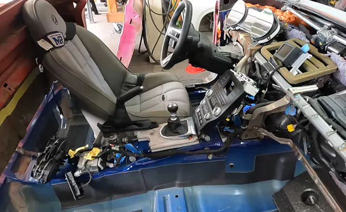 Unlike so many chassis swaps which seek to make old and new into something neither was intended to be, the workmanship that went into melding the two decades is as seamless as the separation between cab and bed. Rather than just bringing over the powertrain of the Mustang, Dustin Nelson of FactoryFreshGarage is grafting in so many other things that make a modern car enjoyable.