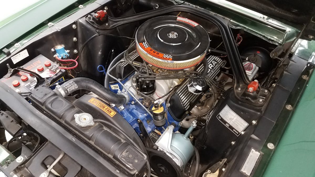 That being said, it would be hard to hold back with the 289 cubic-inch K-code small-block Ford V8 engine that’s built with high-performance Shelby components including an aluminum high-rise intake, a baffled high-capacity oil pan, an auxiliary oil cooler, cast Cobra valve covers, and a chrome air cleaner. The power is then run through a four-speed manual transmission and it meets the road after going through a 3.89:1-geared rearend.