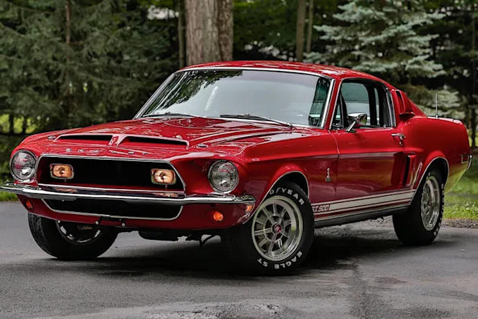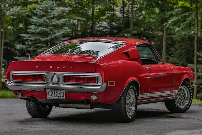 According to the Shelby American Automobile Club, only 1,020 Shelby GT500 fastbacks were produced in 1968, and this example is number 366. Every single model was built during a nine-month period from November of 1967 through July of 1968, and this Shelby finished in its mostly original Candy Apple Red hue features a numbers-matching 428-cubic-inch V8 and a matching four-speed manual transmission.