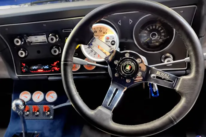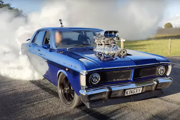 Today, it’s a standing joke that if it has four doors, a giant blower sticking through the hood, and tires that wouldn’t stand a chance against the engine’s torque at any rpm, it’s probably from Australia or New Zealand. This particular Metallic Blue 1970 Ford Falcon has a 10/71 TBS billet supercharger attached to the top of its built 555 cubic-inch big-block Ford powerplant. Internally, the engine is outfitted with a Callies 4340 crank and stroker kit with Diamond pistons. Proper air/fuel mixture is provided by twin Holley 1050 carburetors and the top end revolves around a pair of Edelbrock Performer RPM cylinder heads. All said and done, this beast makes over 1200 horsepower.