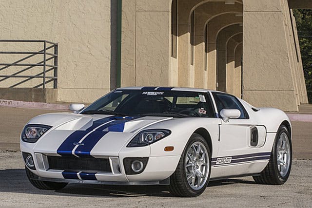 With the deepest pockets a stir, we expect this sweet find to commence some heated bidding. The Ford GT is an American mid-engine two-seater sports car that Ford Motor Company produced from 2005 to 2006. A design that drew its inspiration from the Blue Oval’s Ford GT40 racing cars of the 1960s, the GT features many unique technologies of its day, including a superplastic-formed frame, aluminum body panels, roll bonded floor panels, along with a friction stir welded center tunnel, and a “ship-in-a-bottle” gas tank.