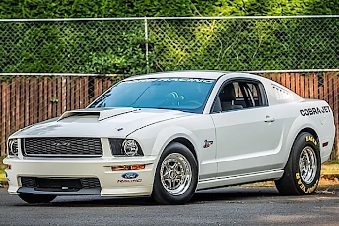 In April of 1968, Ford introduced the Mustang Cobra Jet, which was a drag-ready race-inspired version of the 428 cubic inch V8 powered Mustang available at the time. The Cobra Jet was Ford’s answer to the competition’s drag-ready cars, and it was exactly as it was advertised, a NHRA legal street car. Skip ahead 40 years later to 2008, and Ford provides fans with another great package for the track the 2008 Ford Mustang FR500CJ.