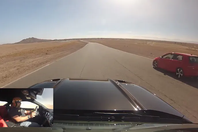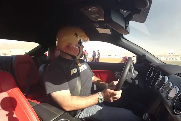 The much anticipated independent rear suspension also seemed to impress Farrah as he traverses some uneven pavement at speed. “It’s a little bumpy, but damn is this thing composed.” He is less complimentary of the stock seats as he wholeheartedly recommends the Recaros which are available in the GT and on the EcoBoost separate from the Track Pack.