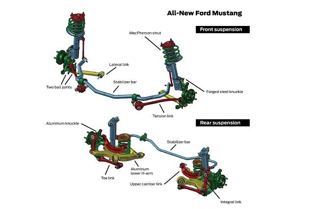 Ford Authority reports that the Mustang’s chief engineer, Frank Davis, said that one of the primary goals of the new pony car was to have “world-class” handling. To that end, Ford added some long-sought features, like the independent rear suspension, but also bench-marked the Mustang against rivals from outside the U.S.; namely, BMW and Porsche.
