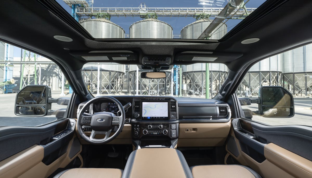 Super Duty owners can now skip the scales with the addition of Onboard Scales and Smart Hitch that will estimate cargo weight in real-time and provide guidance about trailer tongue-weight distribution on the center touchscreen, FordPass app, or within the tail lamps. A 360-degree trailer camera system will give pilots of the Super Duty a birds-eye view to avoid costly collisions. The Super Duty will also be equipped with blind spot notification that alerts drivers to vehicles passing by, even when towing a gooseneck trailer.