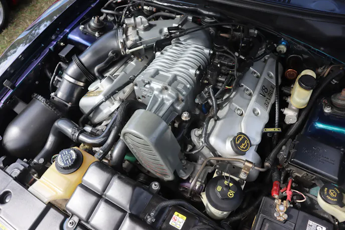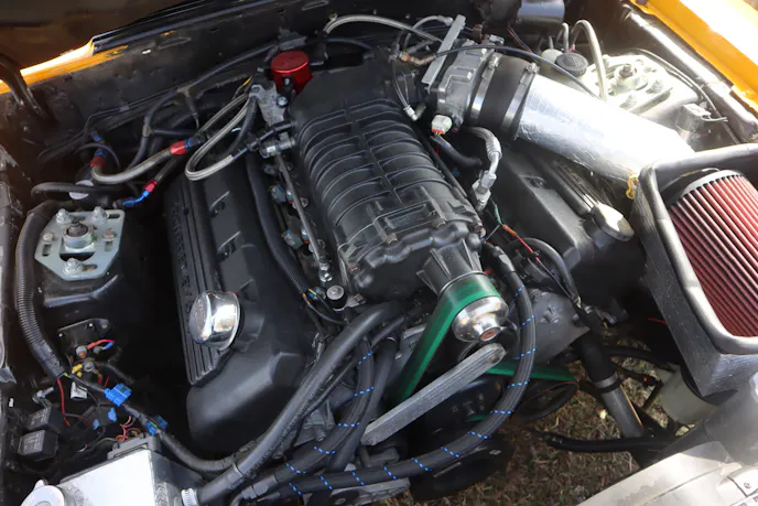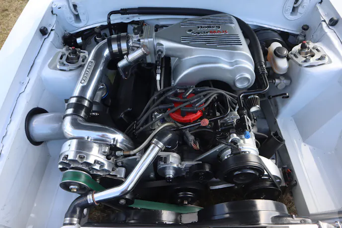 After years of cutting-edge engine swaps and wildly modified machines, the Fox Mustang movement might just be moving into a classic phase. Period-correct mods — like Ford Motorsport intakes and classic Vortech superchargers — are becoming valuable as fans build the cars they dreamed of owning back in the day. A case in point is this ultra-clean Fox hatch. It would have ruled the streets back in the mid-’90s with the big tach on the dash and those ’95 Cobra R-style wheels at all four corners. Under the hood, the smoothed engine compartment hosts a pushrod 5.0-liter topped by a Holley SysteMAX II intake that’s boosted by a non-intercooled Vortech blower. This was a state-of-the-art setup back in the day, and it still delivers today.