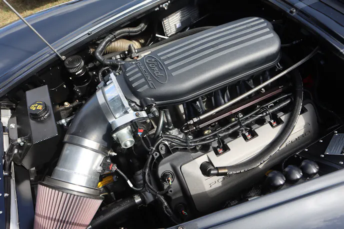 Speaking of fun to drive, you would be hard-pressed not to grin the entire time you were behind the wheel of this open-air performer. Factory Five Racing allows people to build the roadster of their dreams while recalling the magic of the legendary Cobra. This Factory Five roadster is not only a gorgeous example but it is powered by a Coyote 5.0-liter crate engine breathing through a high-revving Ford Performance Cobra Jet intake. Just imagine that Coyote howling at 8,000 rpm through those side pipes on a sunny Florida afternoon. It must be magical.