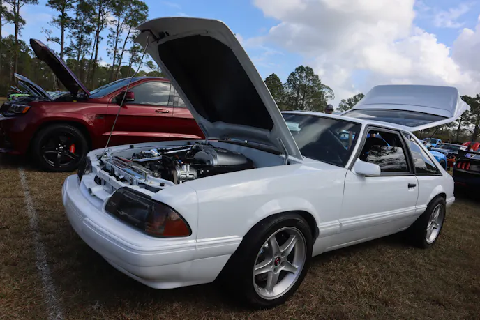 Selecting favorites from a car show always comes down to the personal preference of the writer. In this case, your scribe has a definite soft spot for GT500-powered Foxes. Much like my own Fox 500, this Four-Eye sports an iron-block 5.4 from an S197 Shelby underhood. Pumping out more power courtesy of a smaller blower pulley and a cold-air intake, this two-tone hatchback is undoubtedly a fun ride.