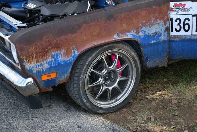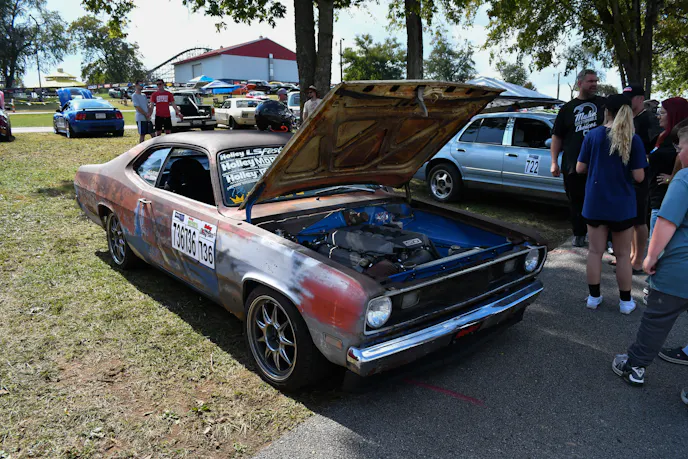 Now, before everyone sends me hate mail, this Plymouth Duster is Coyote swapped. However, what truly stands out is the owner, Jared Pink, who has participated in each of the Holley family of events Grand Champion series, including LS Fest, Moparty, and now Ford Fest, by simply swapping the engine to match the event’s requirements.
