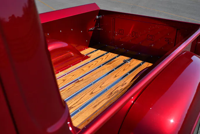 Inside the cabin, a complete TMI interior was installed. Vintage Air keeps everyone cooled off, and a Dakota Digital dash gives engine readouts on the fly. Adding a touch of class is the German-weaved carpet. This truck provides a perfect combination of looks and performance, and it’s an amazing tribute to his late wife. We look forward to seeing more of this truck at upcoming shows.