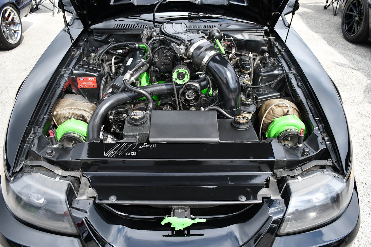 Our initial curiosity led us to inquire about the firewall and the absence of a pinch weld when speaking with Jay. To our surprise, the car boasts more than just a fancy engine bay overhaul and some interior swaps. Instead, the entire floor pan and front end are from a 2014 Mustang, allowing for the incorporation of the 2014 interior, Coyote engine, and braking system. The rear half of the car is a Fox Body Mustang that has been skillfully grafted onto this new chassis. The car was like a hidden treasure hunt trying to find all the meticulous work that had been done. Even though it’s still a work in progress, it’s undoubtedly going to be an incredible ride when completed.