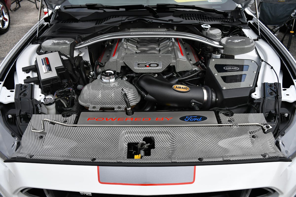 Robert Hersh Jr.’s Mustang not only boasts an aggressive appearance, with its 4-inch Cervinis cowl hood, MP Concepts GT500 front bumper, and carbon fiber rear louvers, but it also excels in the performance department. Beneath the hood, you’ll find an ESS Tuning G3 supercharger kit, fine-tuned by Lund Racing, nestled alongside the 5.0-liter Coyote engine.