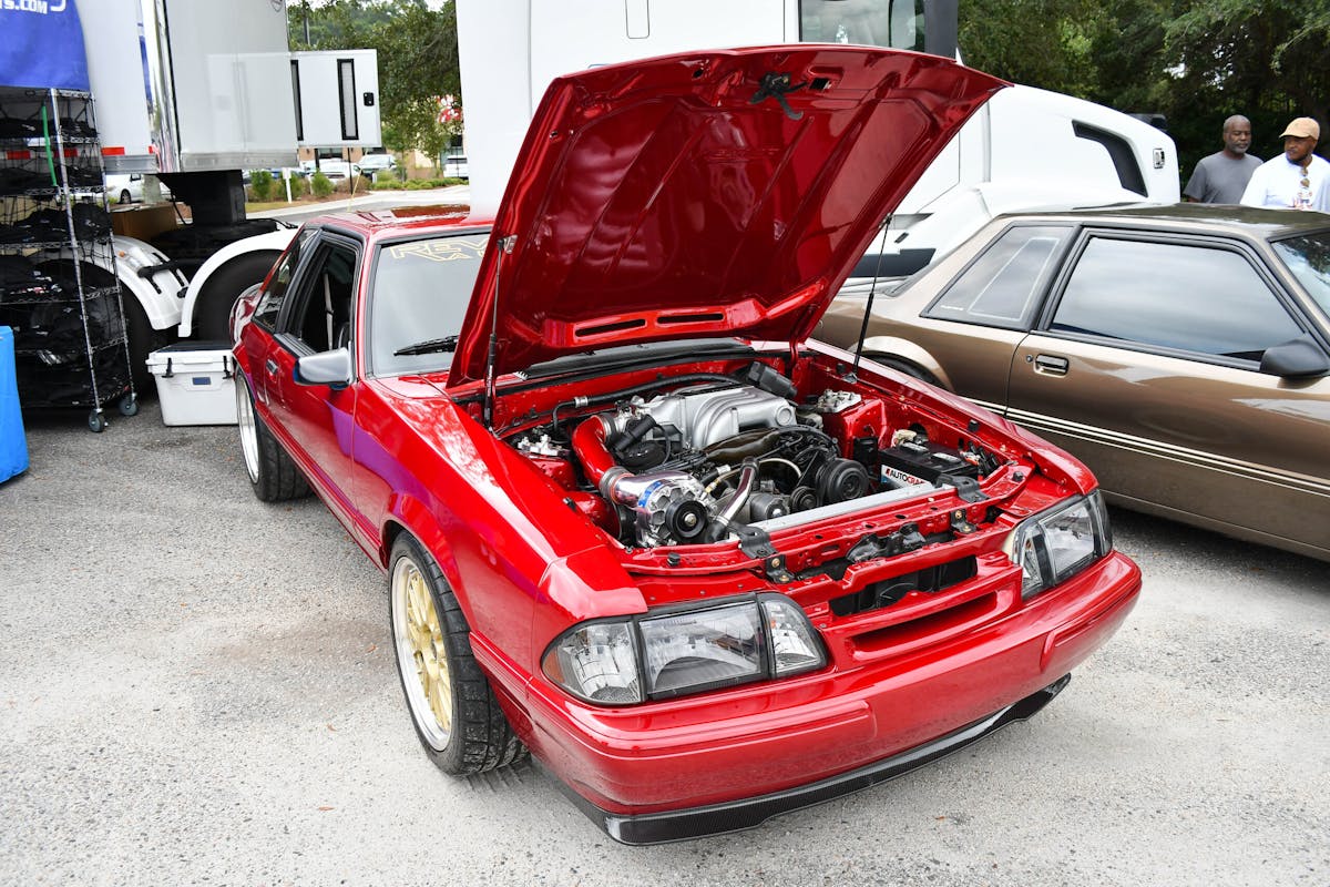 If you wander through the show car field of Mustang Week, you begin to notice certain trends: centrifugal superchargers on Fox Body Mustangs, Torq Thrust wheels on vehicles owned by those over 50, and the list goes on. However, when you lay eyes on Jonathun Catapano’s stunning Mustang, everything you saw before fades from your mind. The bright red custom widebody, adorned with fender flares and molded side skirts, perfectly complements the polished CCW Classic wheels. Thanks to the RideTech air bags and management system, the car sits at a nice stance. But it’s not just the paint, wheels, and suspension that drew everyone to this build.
