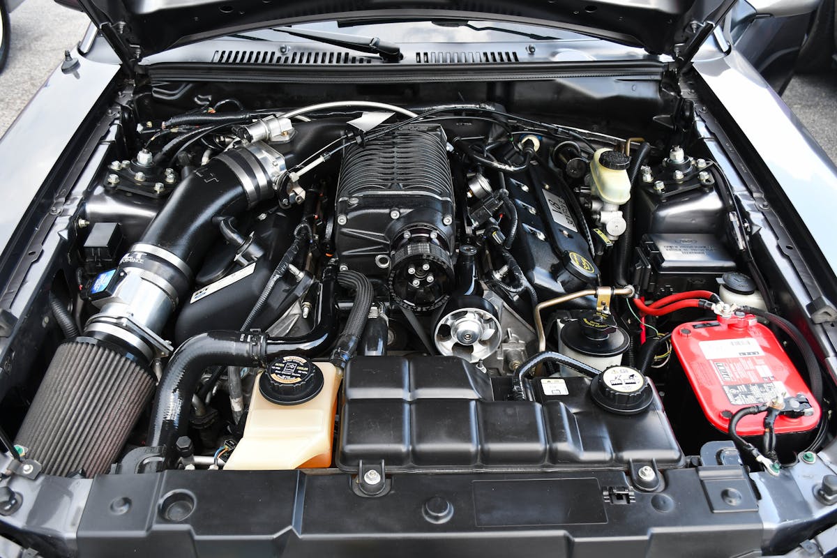 Robert Hersh Jr.’s Mustang not only boasts an aggressive appearance, with its 4-inch Cervinis cowl hood, MP Concepts GT500 front bumper, and carbon fiber rear louvers, but it also excels in the performance department. Beneath the hood, you’ll find an ESS Tuning G3 supercharger kit, fine-tuned by Lund Racing, nestled alongside the 5.0-liter Coyote engine.