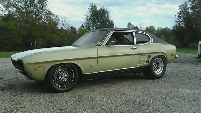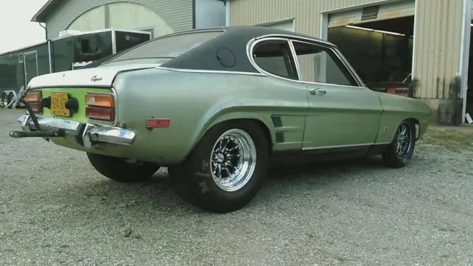 This 1973 European Ford Capri — a popular European equivalent to America’s beloved Mustang — is in the process of combining classic European styling with modern American muscle. The result is one unique, nasty sounding hot rod.