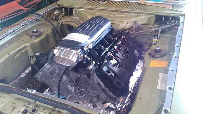 According to Wikipedia, these cars only weighed between 2,100 to 2,500 pounds from the factory. Add the Coyote with a Cobra Jet intake and this car has no choice but to be scary fast! We hope to follow up again on this Coyote Capri again once it is finished.