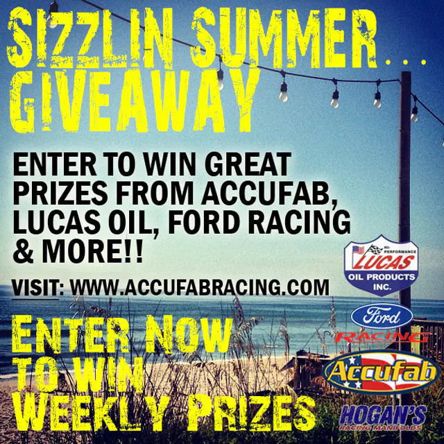 Accufab has been bringing you top-shelf quality and performance since 1993. This summer, we want to show our appreciation for all of our fans with the Sizzlin’ Summer Giveaway. Entering the contest is easy: when you sign up on our website at www.accufabracing.com/newsletter, you will be entered to win some awesome prizes. We will draw a weekly winner from entries every Friday, and then notify the winner by email, as well as announcements on facebook, instagram and twitter.