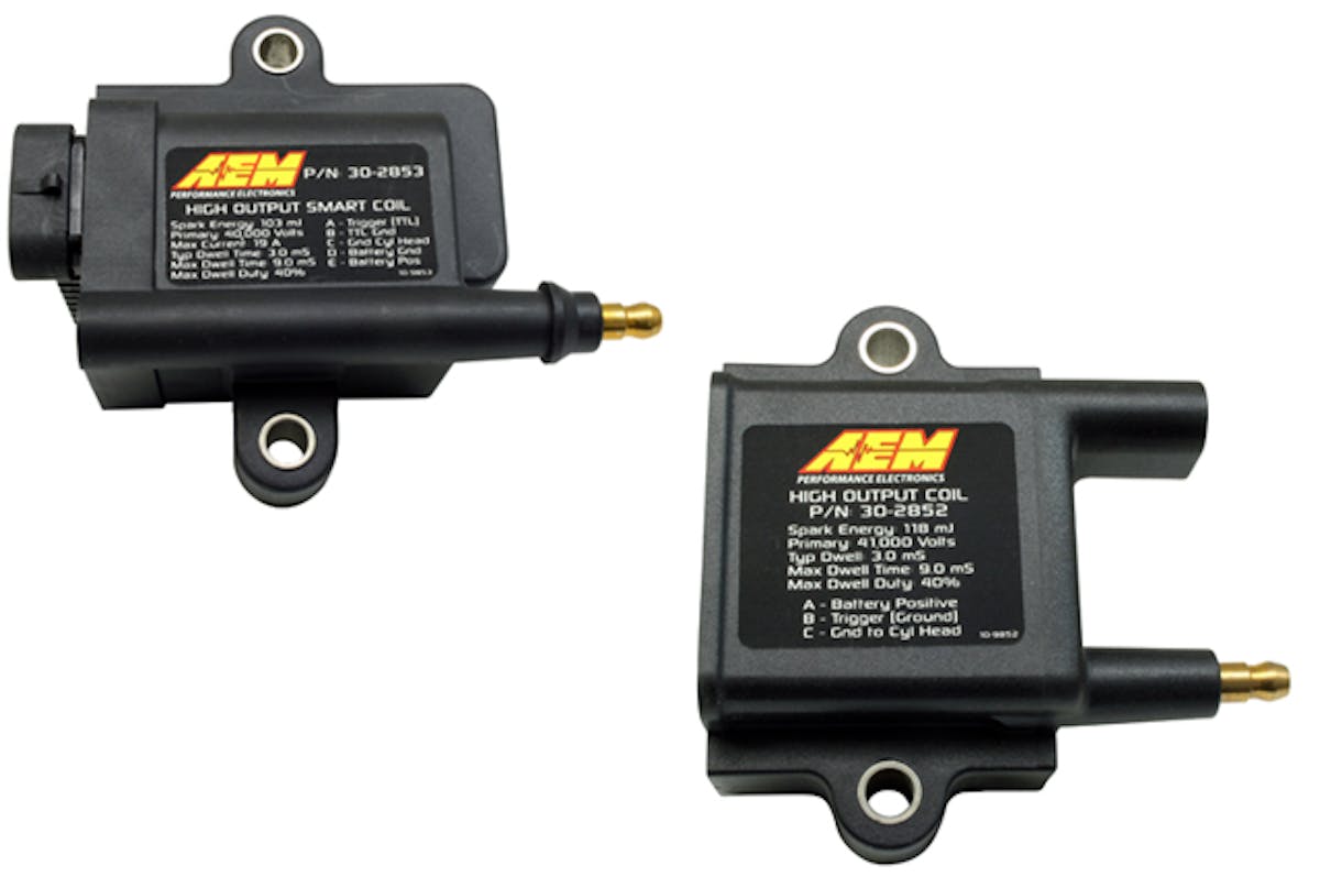 Regardless of your coil needs, AEM Electronics has High Output IGBT Inductive Coils for use with or without an ignitor. The “smart coil” is designed for applications that do not have an ignitor, while the “dumb coil” is designed to be used with an ignitor; both designs are excellent for use in high-boost or high-compression engines.
