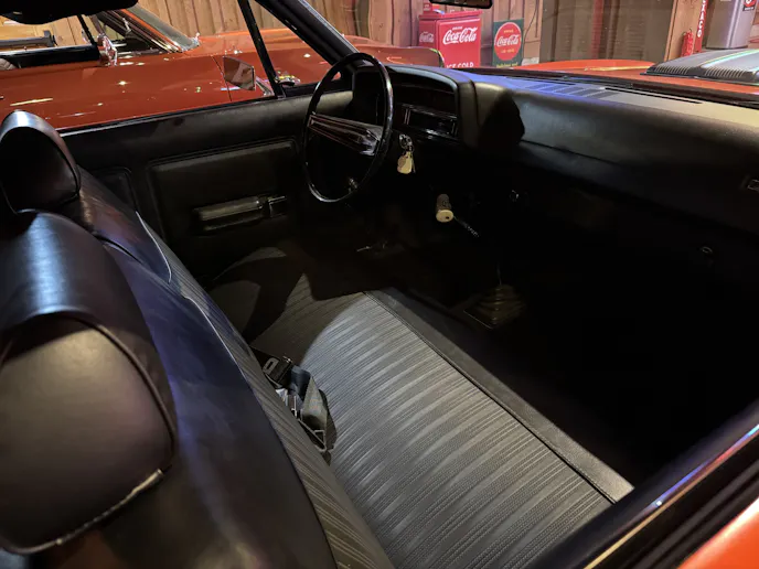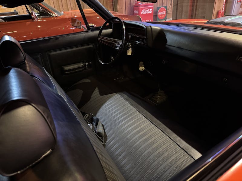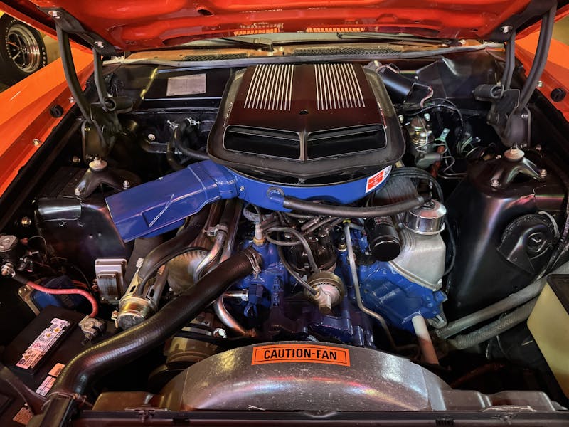 Tucked away next to those Mustangs was an ultra-rare 2,000-mile 1970 ½ Falcon in Calypso Coral. Not just any Falcon, this one packs the punch of a 375-horsepower 429 Super Cobra Jet with a Shaker hood, it’s backed by a four-speed, and it has the Drag Pack option, which means there are 4.30 gears in the 9-inch. There’s also a bench seat and a radio delete for lighter weight. Talk about a drag-racer special!