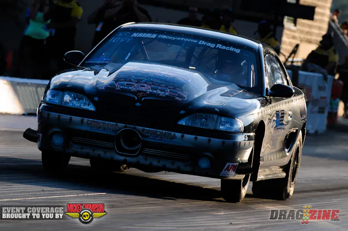 In fact, he was outdone by only two people – the top qualifier, Rich Bruder, in his 400-cube turbocharged machine, who clicked off a 4.63, and “Leaf Spring King” Ron Rhodes, who turned in a 4.67 from his nitrous-powered, 23-degree headed small block.