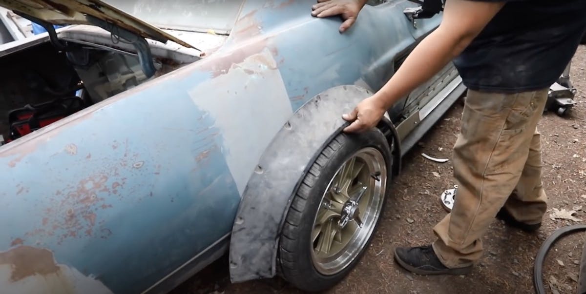 In this episode, they sourced more body parts laying in the dirt, and with nary an E-Z UP protecting them from the rain and the elements, they proceeded to add plenty of Maximum Motorsports suspension, and made some steampunk-styled widebody fenders, front lip spoiler, and a killer vented hood all from scrap metal laying around the place. We won’t give away all the details, but their bravery to let it rip en lieu of overthinking every project like most of us gearheads do, is refreshing. It’s also nice to see such innovative and crazy projects coming from two dudes wrenching at home, and in the dirt. It goes to show that in the absence of huge budgets and fat garages, a little know-how, elbow grease, and determination can produce some impressive results.