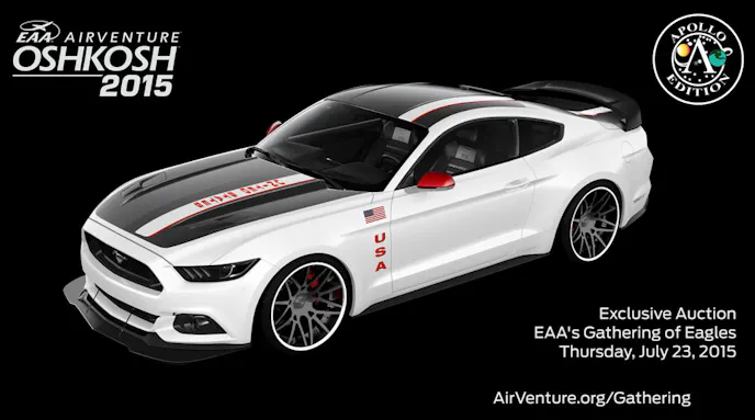 “The Ford Apollo Edition Mustang salutes man’s greatest technological achievement, with the ingenuity, precision, and power that defined the spirit of American innovation,” said Edsel B. Ford II, a member of the Ford Board of Directors. “Inspired by the Apollo program, Ford Motor Company committed itself to including exhilarating power, cutting-edge technology, and extraordinary craftsmanship in this automobile, which will support the next generation of pilots in EAA’s aviation education programs for young people.”