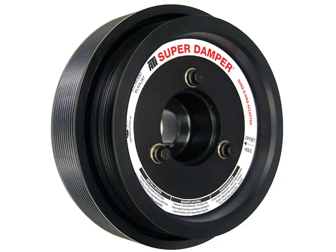 ATI Performance Products, Inc. is proud to introduce its 10% overdriven Super Damper (#918049) for the 2007.5 and newer Ford GT500 supercharged engines. This new 7.81-inch damper application is a direct replacement for the stock OEM unit and features a 10-rib, 10% overdriven supercharger drive on the outer shell, as well as a removable OEM size 6-rib accessory pulley. ATI Super Dampers provide balanced dampening of torsional crankshaft vibrations through all RPM ranges and exceed SFI 18.1 Safety Certification for competition use. As with all ATI Dampers, the GT500 Damper is fully rebuildable and tunable.