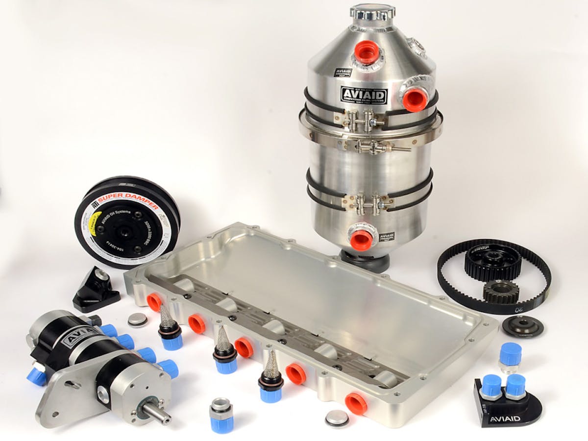 Aviaid, the company that’s been building race-winning lubrication system for Fords since the days of the LeMans-winning GT 40 and Shelby Cobras, has developed a highly efficient dry sump package for Ford 5.0L DOHC Coyote engines.