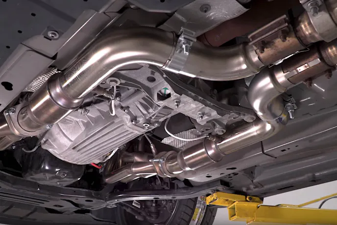After the team was happy with the vehicle’s ride height, it was time to tackle some engine modifications. To ensure the S550’s Coyote engine was prepared for the jump in performance, the team opted to install a set of Kooks 2-inch Long Tube Green Catted Headers.