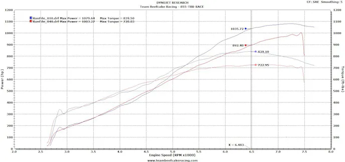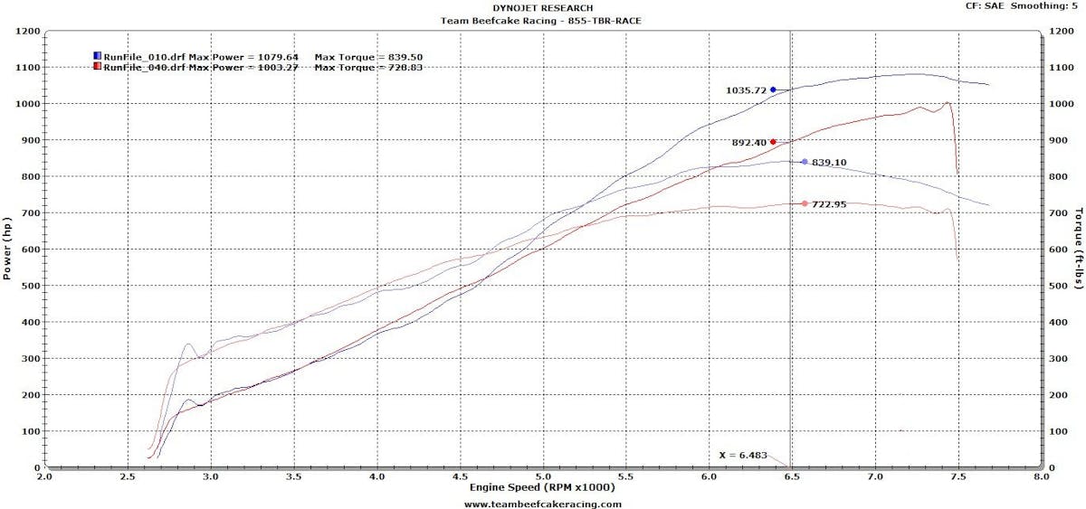 That search should go well given the 1079 hp to the rear tires at 7300 rpm. According to Reeves the new combination picked up significantly throughout the power band, and he tells us the car probably would have made more power to the tires had it not been dyno’d on drag radials. “We wanted it exactly as it will be on race day though, so I’m pretty happy with it,” he said.