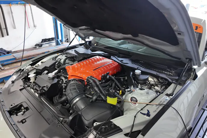 “She does the road race thing… in the summertime when it’s hot,” Matt noted. “(The) intake air temps is huge.” The solution involved swapping out the old blower for a new Stage 2 Gen 6 Whipple 3.0-liter kit, known for its efficiency and cooler operation.
