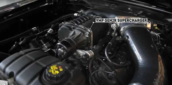 “This black beauty is not your typical 1970 Ford Mustang Mach 1,” says VMP. “Under the hood is a ’15-’17 Coyote engine with a VMP Gen2R supercharger.”