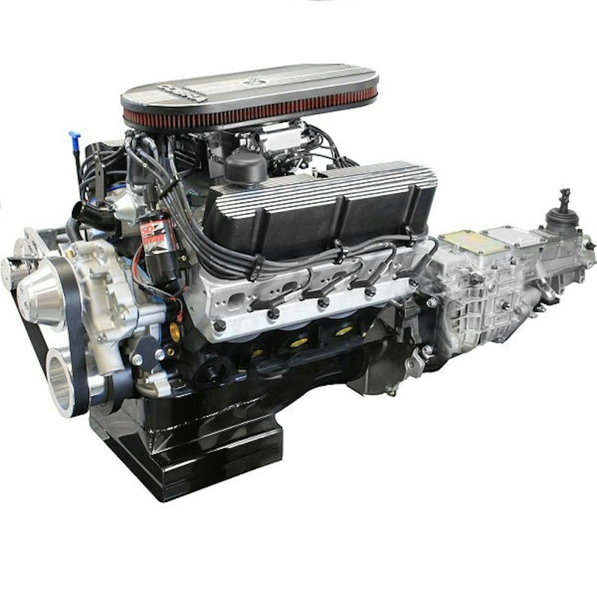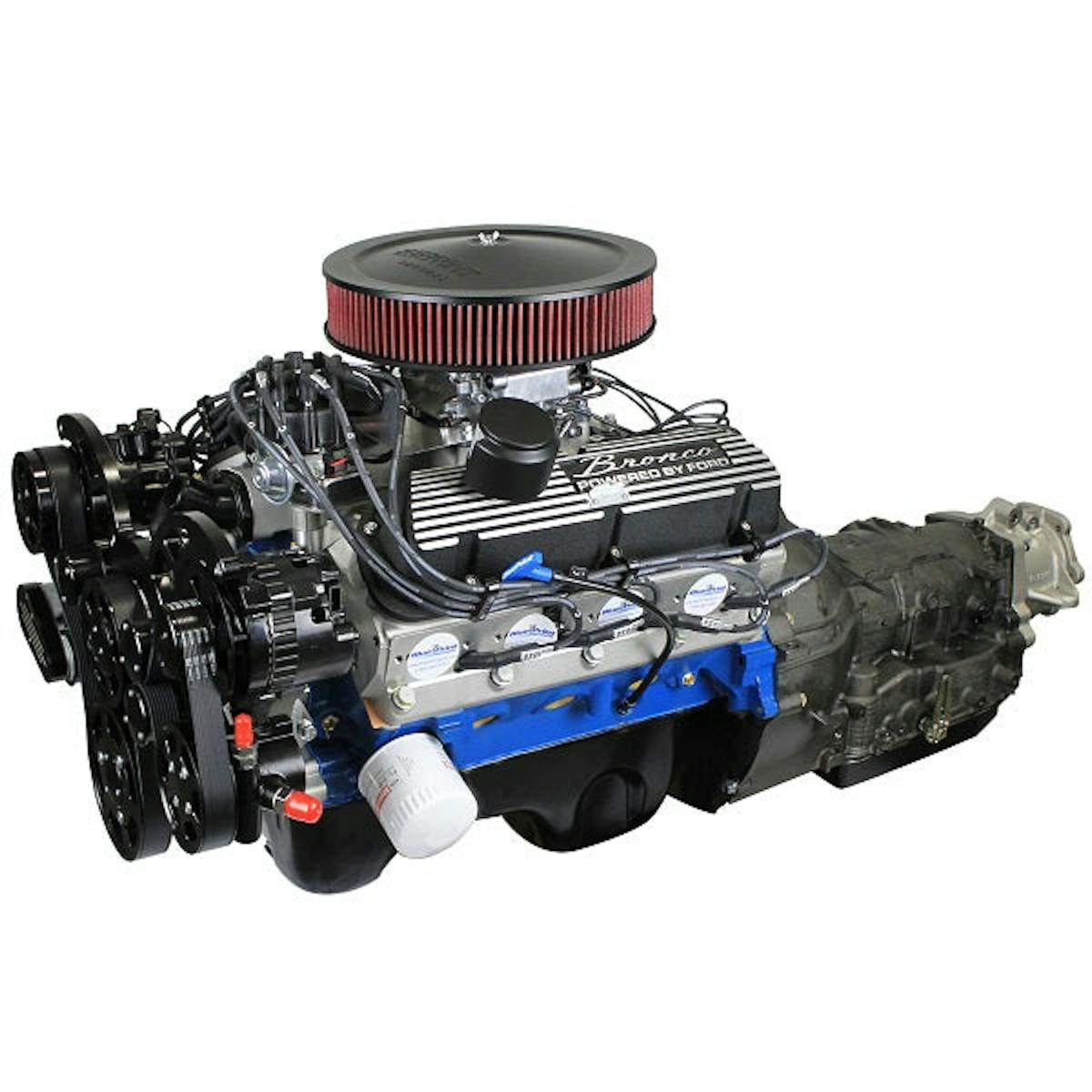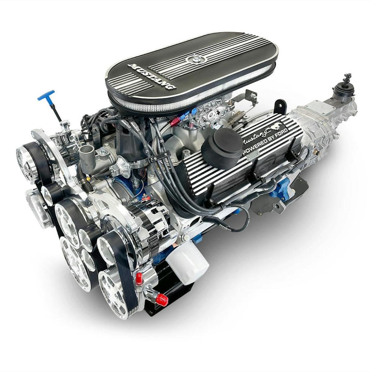 Built in conjunction with a few actual car builders, Blueprint has Ford crate engines and transmissions for Cobras, Mustangs, and early Ford Broncos, which has become a popular build among FFR builders in recent years. While it’s still a small-block and not an FE, Blueprint has a legit 427ci to cram in your Cobra, with a manual transmission or a 4R70W automatic, ready to drop into your FFR Cobra, so you can drive a real 427 Cobra now! The price of this combination is $25,549 and it makes 541 hp. Polished pullies and accessories make it look at home under the hood of a new Cobra, and for $28,649 you can upgrade it to fuel injection.