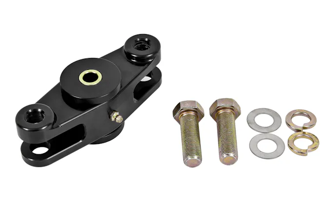 Upgrade to the ultimate in strength and durability with BMR Suspension’s billet aluminum center pivot for S197 Watts Links (WL007). BMR’s center pivot is CNC-machined from 6061-T6 billet aluminum and is black anodized for a great looking, durable finish. It uses a double sheer mount to the crossmember with a greasable Delrin bushing for smooth, bind-free movement. The new pivot simply bolts onto your existing Watts Link with supplied hardware. This pivot works with both the rod end and polyurethane configurations. BMR Suspension designed the WL007 to work well for street performance and handling applications. The WL007 is 100-percent bolt-on and requires no cutting or modifying of your existing Watts link. BMR’s billet aluminum Watts link pivot retains all of the adjustability found in the WL005 and WL006 Watts link kit. The billet aluminum construction means reduced weight and increased strength. When performance is a must, rely on BMR Suspension!