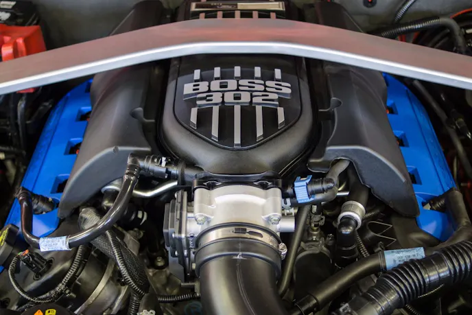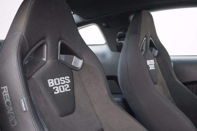 On with the show. This Boss 302, powered by none other than the 5.0-liter RoadRunner V8, is good for 444 horsepower and 380 lb-ft of torque from the factory. Filled with a forged rotating assembly and a matching pair of CNC ported DOHC cylinder heads from the factory, this Coyote cousin is stout enough for track duty even by today’s standards.You may say that those performance figures aren’t impressive, now that the GT350 has been out for a few years, but we employ you to revisit the Boss if you will.