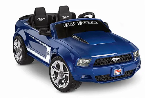 Power Wheels currently offers two Mustangs in its lineup; a red one for boys, and a pink one for the ladies. Like other Power Wheels, the Boss 302 Mustang will be powered by a 12-volt rechargable battery. It will come with two speeds (2.5 mph and 5 mph) as well as reverse, and perhaps coolest of all, a sound box will give your kids the sounds of a real Boss 302 Mustang.