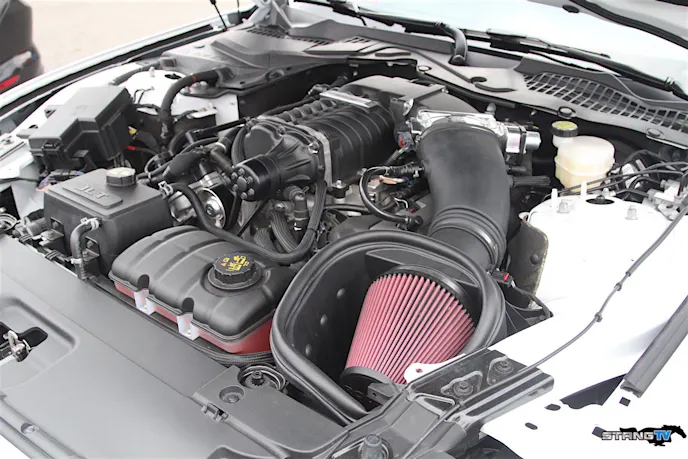 “It includes our custom tuning calibration using SCT, but is still setup for the stock engine,” Brent explained in regards to their development package. “This car is running 10.20s in the quarter-mile, at more than 134 MPH. It’s a stock Coyote engine with Kooks long tube headers, a Circle-D torque converter, factory 3.55 gears, a Ford Racing throttlebody, and the Roush Performance 2.3-liter TVS supercharger – just like it comes from the factory as a Roush RS3.”